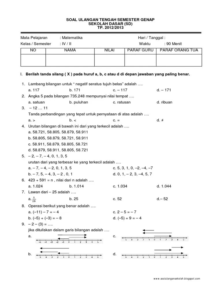 Contoh Soal Matematika Kls 4 Semester 2 - Kisi Kisi Soal Uts Matematika Kelas 4 Smtr 2 15 16 Pdf : 60 80 80 90 70 70 60 70.